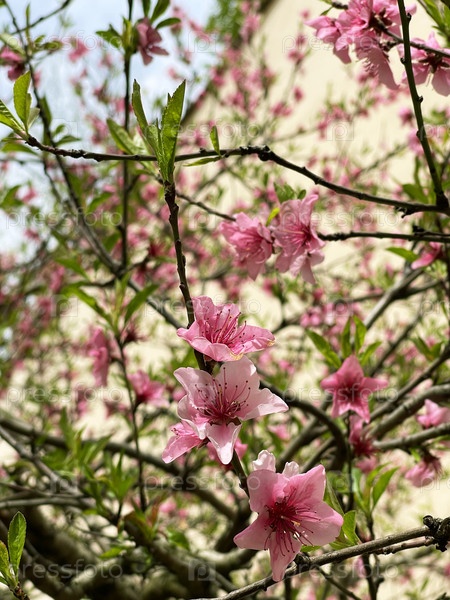 Цветущее вишневое дерево крупным планом, цветочный фон