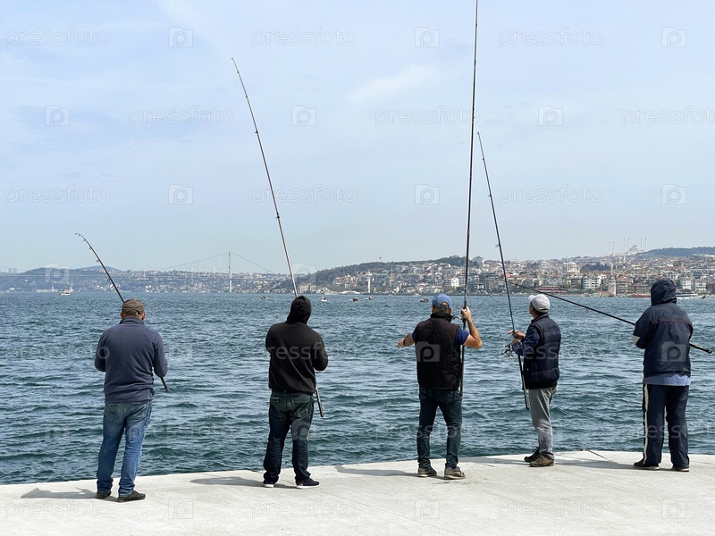15 апреля 2023 г. - Стамбул, Турция: Рыбаки на набережной