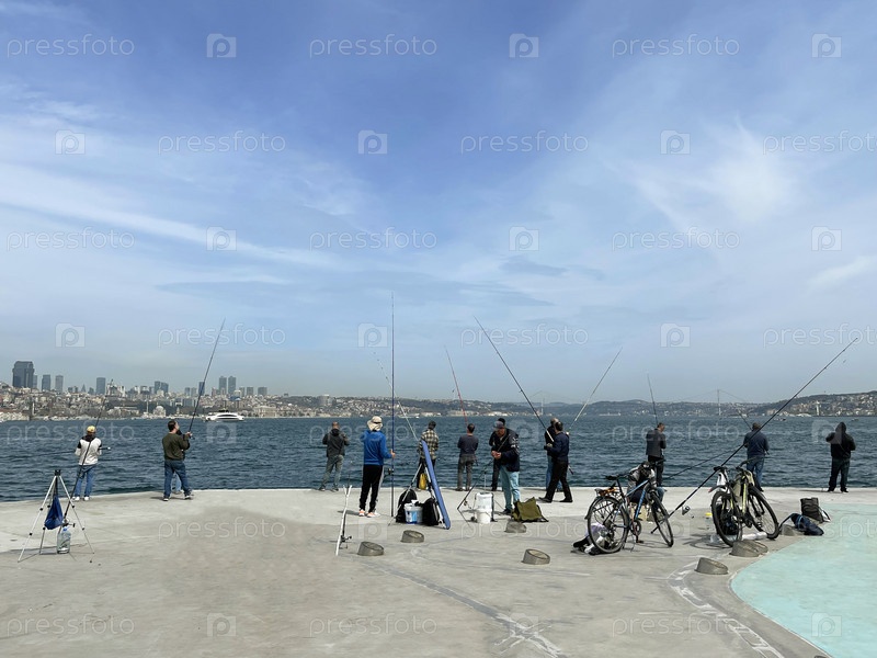 15 апреля 2023 г. - Стамбул, Турция: Рыбаки на набережной