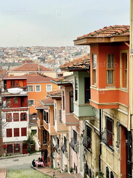 15 апреля 2023 г. - Стамбул, Турция: Городская жизнь, люди на узкой улице в районе Балат