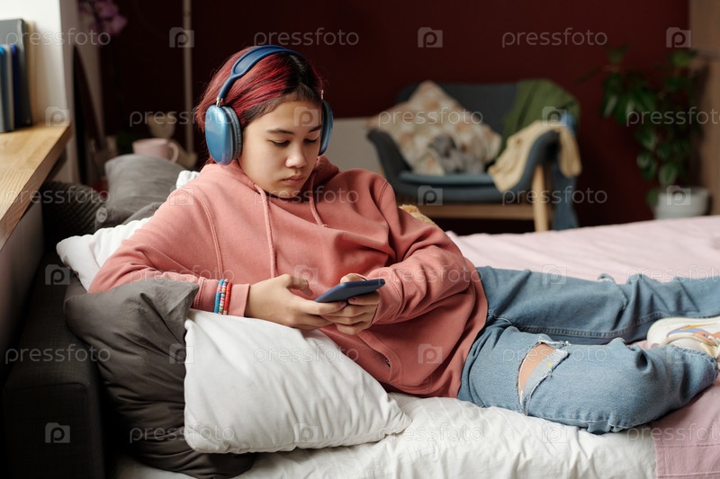 Девушка-подросток прокручивает список плейлистов