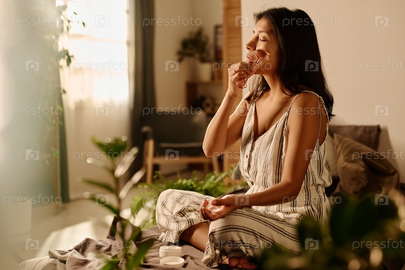 Расслабленная женщина, проходящая процедуру массажа