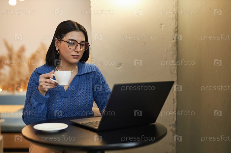 Деловая женщина, использующая ноутбук в кофейне