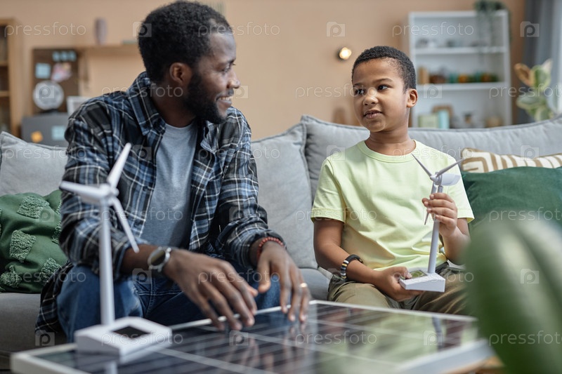 Отец и сын обсуждают солнечные батареи