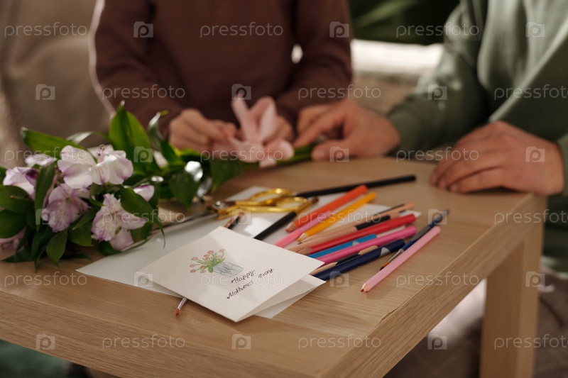 Поздравительная открытка на столе с карандашами