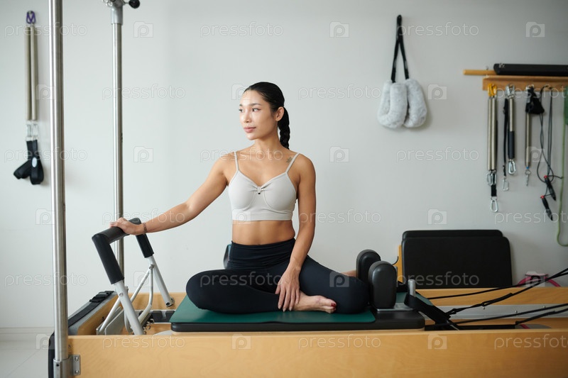 Женщина, тренирующаяся в спортивной студии