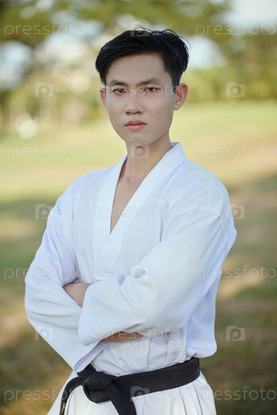 Уверенный в себе чёрный пояс Таэквондо спортсмен