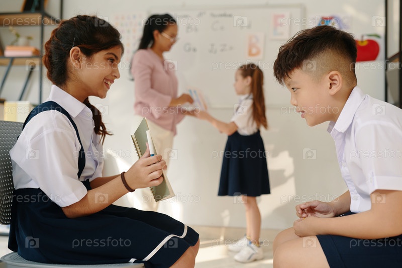 Ученица показывает рисунок однокласснице