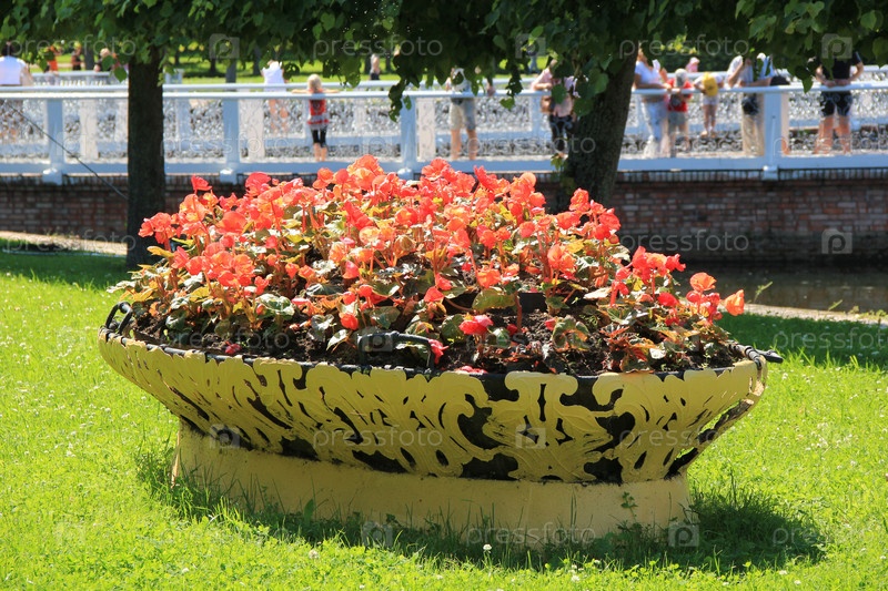 Цветы на клумбе в парке