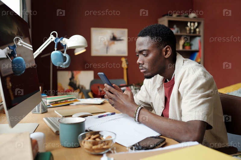 Студент смотрит на экран смартфона