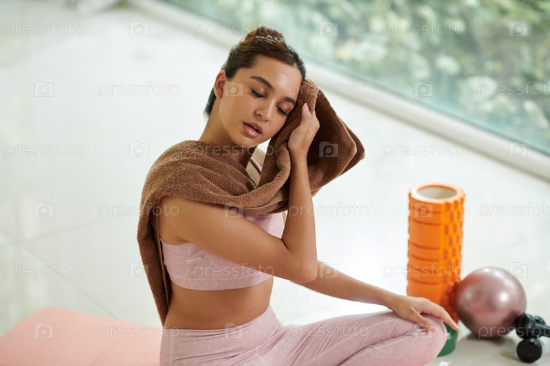 Уставшая женщина вытирает пот
