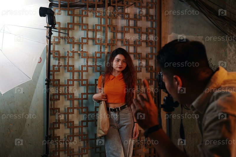 Фотограф снимает фотографии модной модели