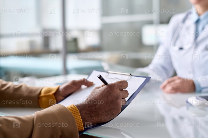 Ближайшее изображение мужчины, держащего клипборд в клинике