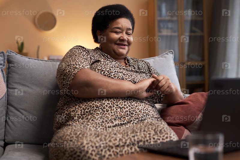Черная старшая женщина наслаждается видеозвонком с семьей