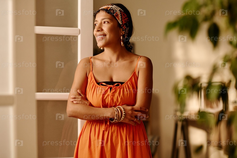 Спокойная женщина смотрит в окно