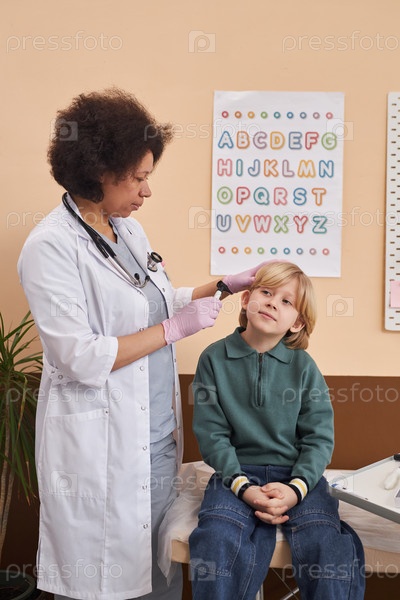 Врач, осматривающий детей Уши и слух Женщины