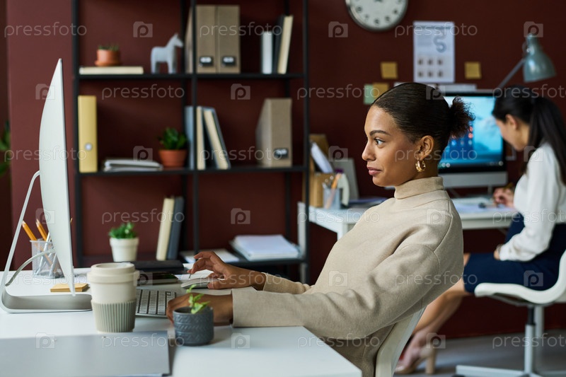Менеджер прокручивает через онлайн-материалы