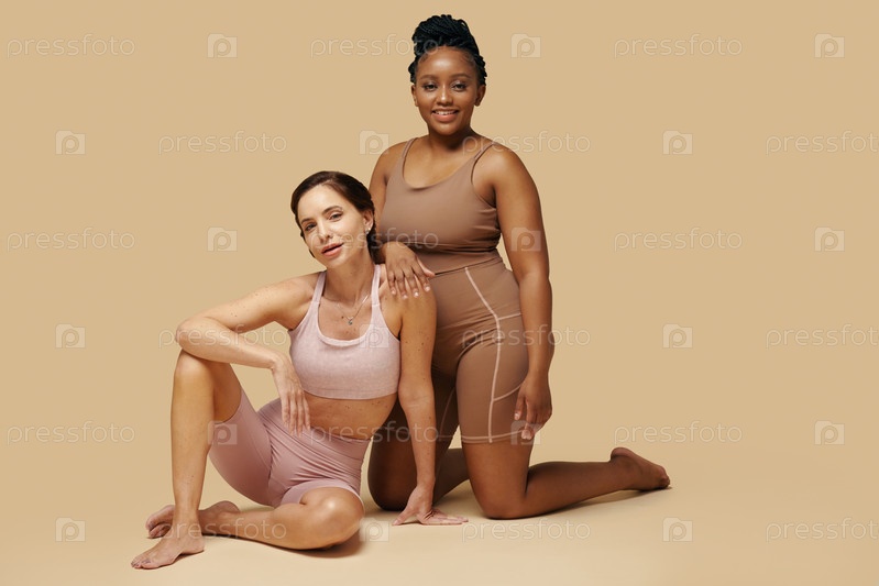 Радостные чернокожие и женщины в Shapewear
