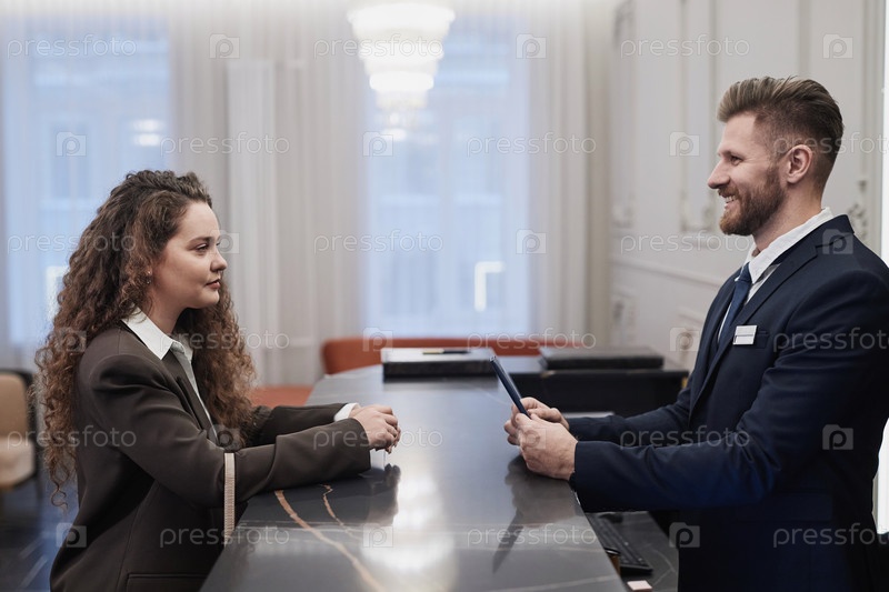 Улыбающийся мужчина приветствует гостя на входе