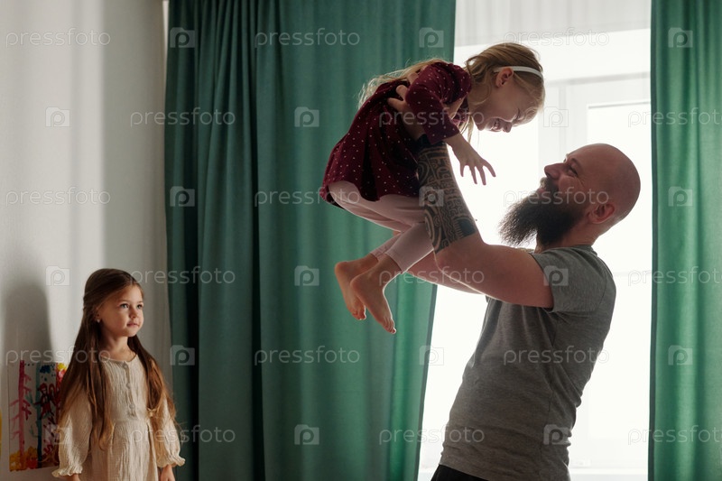 Мужчина играет со смеющейся дочерью