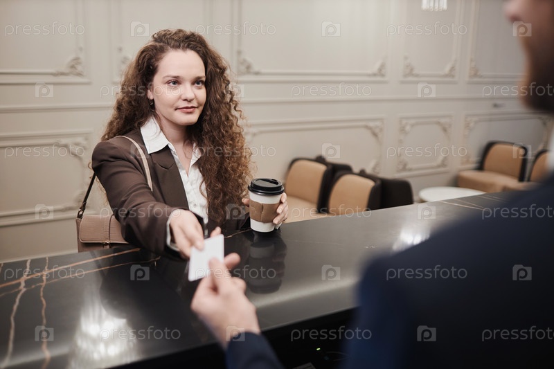 Женщина, регистрирующаяся в роскошном отеле