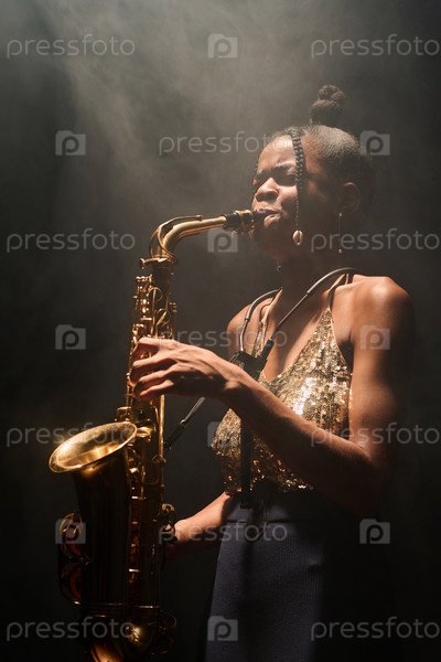 Женщина играет на саксофоне джаз