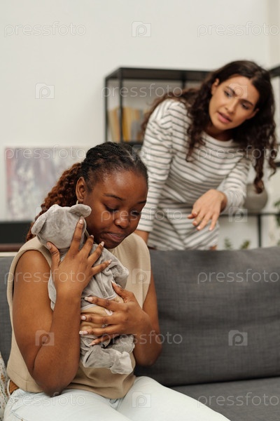 Защищать плачущего ребенка от раздраженной девушки