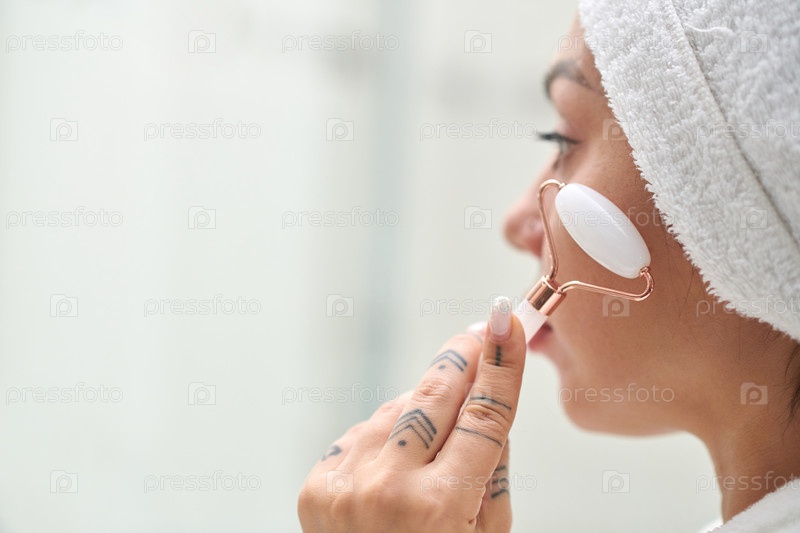 Массаж лица с нефритовым каменным роликом