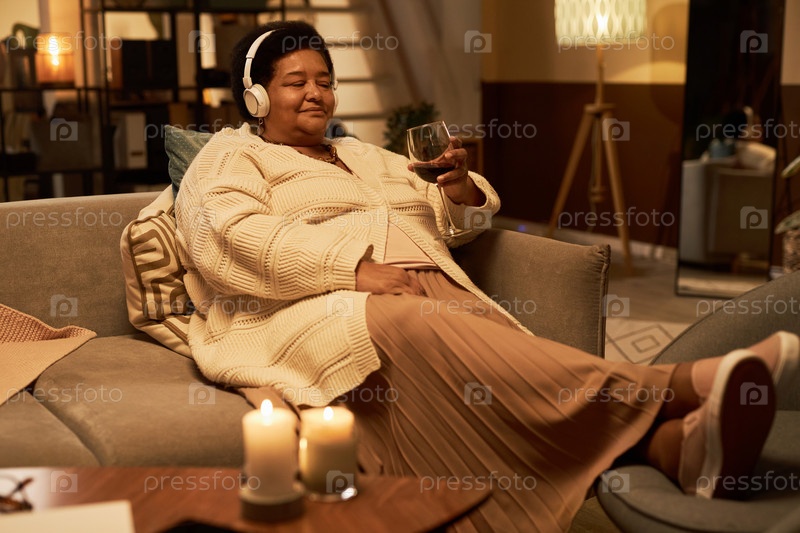 Афроамериканская женщина, слушающая музыку