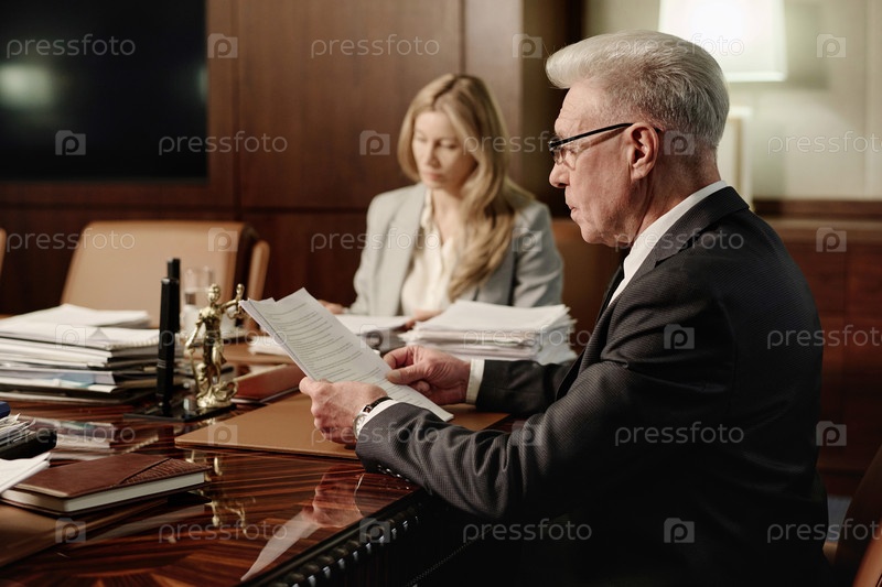 Коллеги-мужчины и женщины, выполняющие бумажные работы, сидящие в конференц-зале Мужчина
