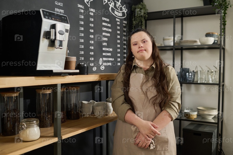 Официантка стоит у кофемашины