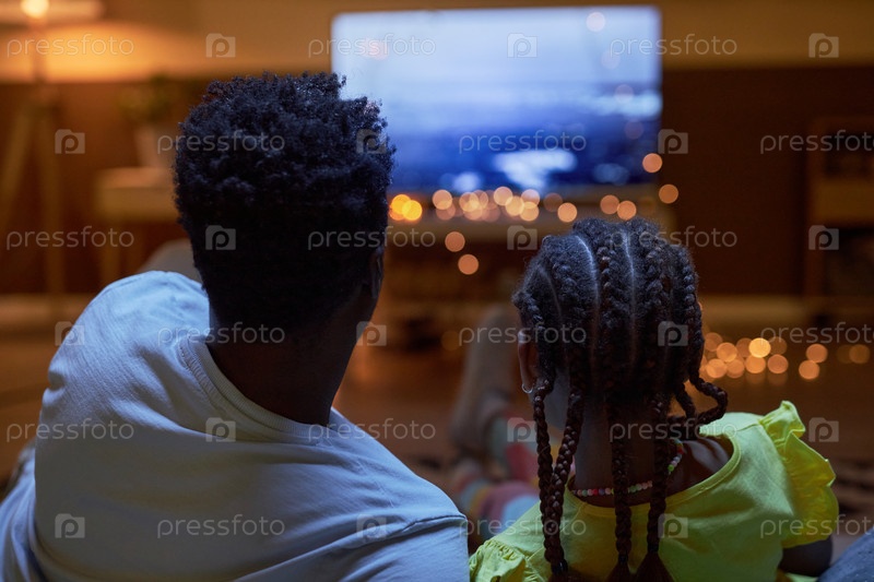 Черная семья отец и дочь смотрят телевизор