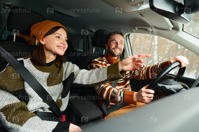Счастливая пара, путешествующая на машине
