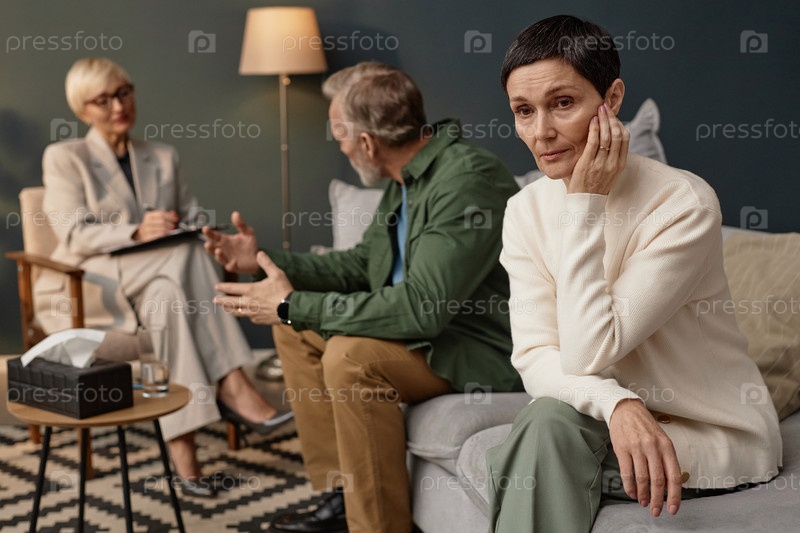 Беспокойная зрелая женщина в параллельной терапии
