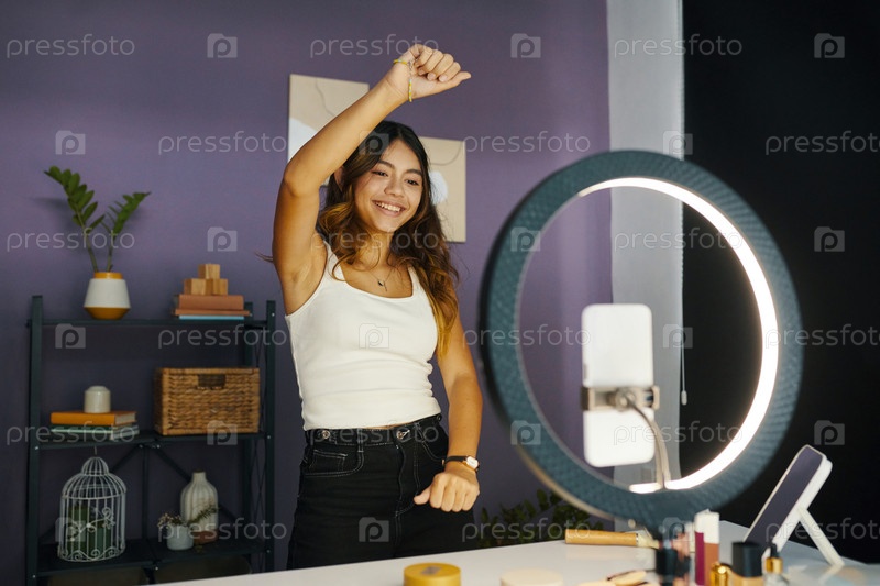 Подростковая девушка снимает себя танцующей