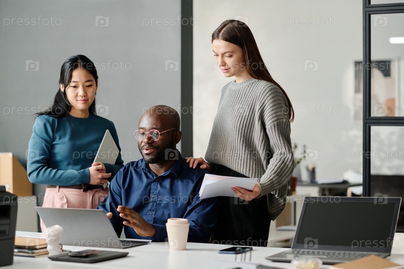 Мультиэтническая команда обсуждает бизнес-стратегию
