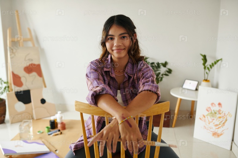 Девушка, работающая в домашней художественной студии