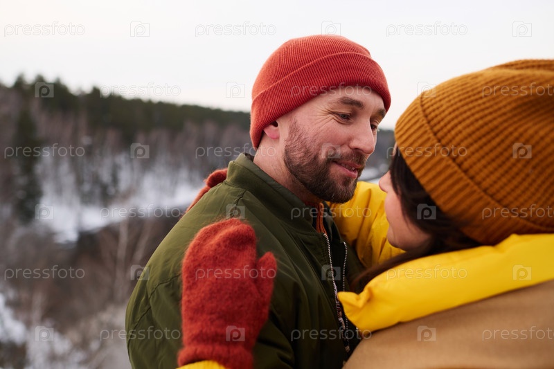 Мужчина и его жена в зимний день