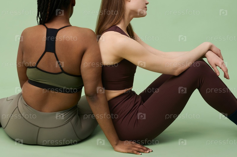 Этнически разнообразные женщины сидят на полу в студии