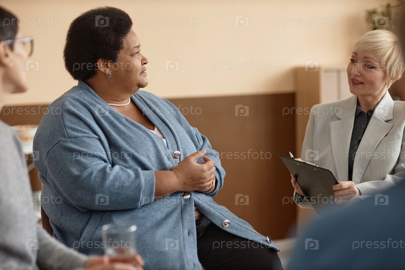 Афроамериканская старшая женщина на встрече группы поддержки