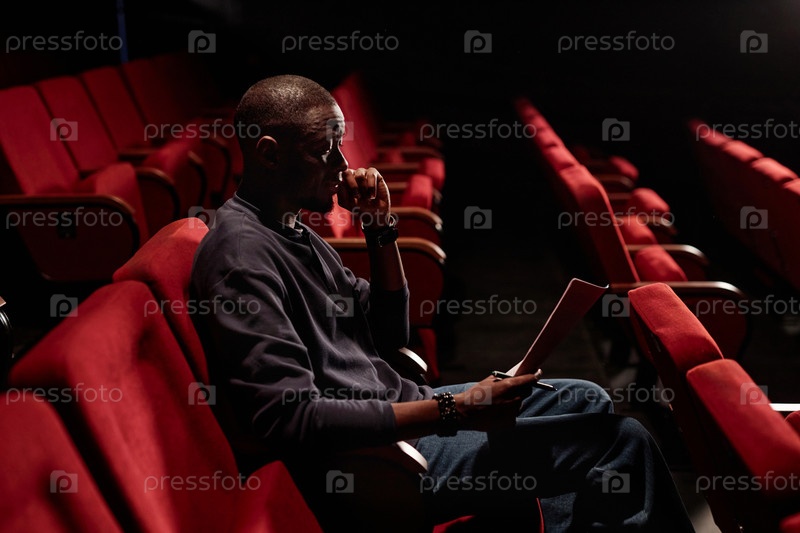 Черный мужчина читает сценарий в пустом театре