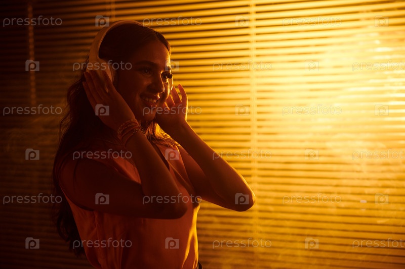 Девушка слушает оптимистичную музыку в наушниках