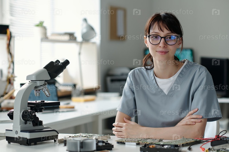 Молодая женщина-техник в очках