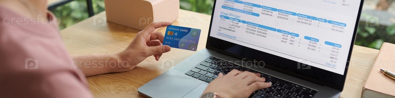 Веб-баннер с женщиной, оплачивающей счета