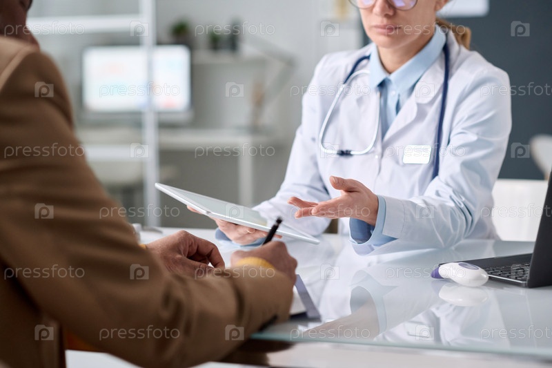 Близкий контакт с женщиной-врачом, держащей планшет