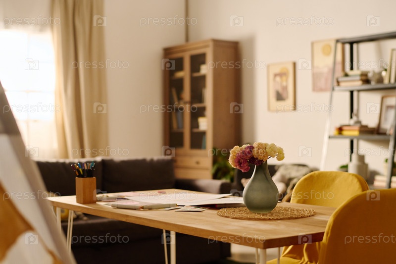 Букет цветов в вазе на деревянном столе