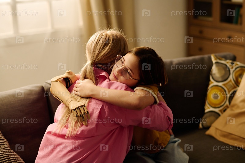 Мать и дочь сидят в объятиях