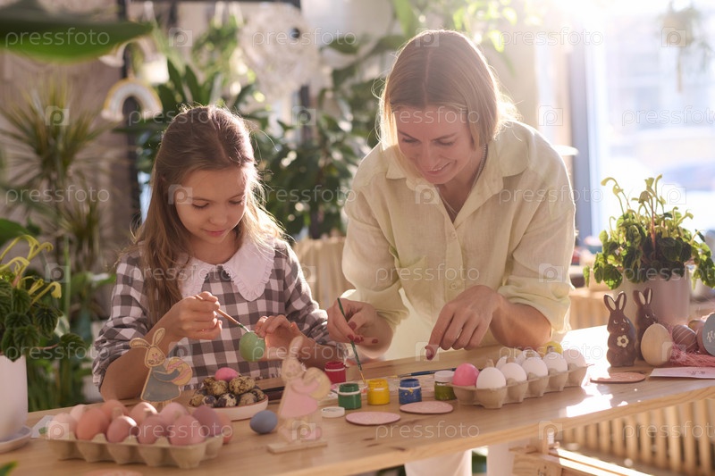 Девушка и ее мама красят пасхальные яйца
