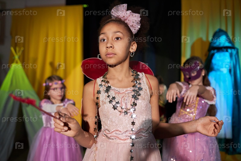 Девушка, играющая в фею на сцене театра