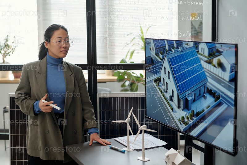 Сотрудник смотрит на интерактивную доску